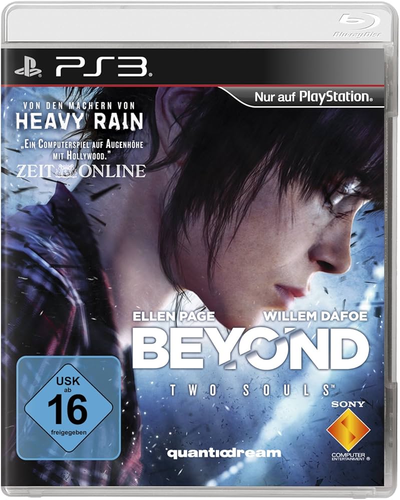 Geliebt, gehasst, David Cage. Ich habe immer noch Heavy Rain hier liegen – das will ich auch endlich mal ausprobieren. Dies ist das Nachfolgespiel. Spielerisch liegt das irgendwo zwischen Adventure und Visual Novel. Thematisch ist das hier wohl ein übernatürlicher Thriller. Irgendwas mit einer jungen Frau, die mit einem Poltergeist verbunden ist, Verschwörungstheorien und so. Dazu zwei Hollywoodstars, die die Hauptcharaktere verkörpern.