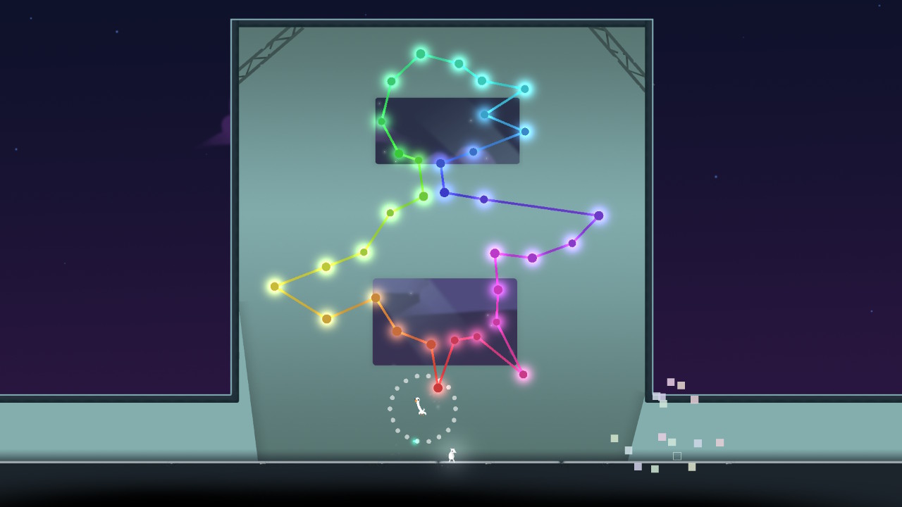 Der grafische Stil des Spiels ist sehr eigenständig und sehr Kyle-Thompson-mäßig. Hier wird mit relativ wenig grafischem Aufwand viel Style erreicht: hübsche Hintergrundparallaxen, abwechslungsreiche Biome mit sehr souveränen Farbpaletten, viele kleine animierte Details und ein gutes UI, um alle Bumper oder Verwandlungstiere im schnellen Tempo lesbar zu machen. Aber immer in diesem leicht naiven, fast gemalt wirkenden niedlichen Stil. Die Musik vom anderen Thompson-Bruder zahlt auf die Grafik und das Gameplay ein und begleitet gekonnt das Geschehen.