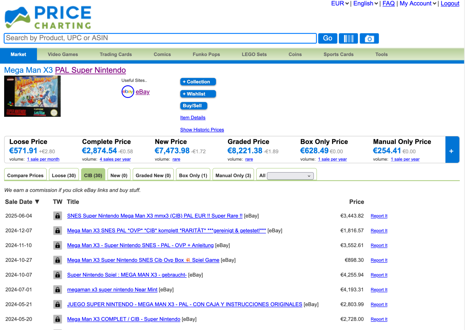 Ich denke, die Preise, die pricecharting.com berechnet, sind im Vergleich zu dem, was auf eBay Realität ist, schon fragwürdig. Ich denke, man kann als Käufer die Preise theoretisch erreichen – indem man geduldig wartend zum rechten Zeitpunkt die passende Auktion erwischt. Aber bei manchen Titeln muss man da schon sehr, sehr viel Geduld mitbringen, da diese einfach nur selten versteigert werden. Das betrifft nicht unbedingt nur seltene Spiele.